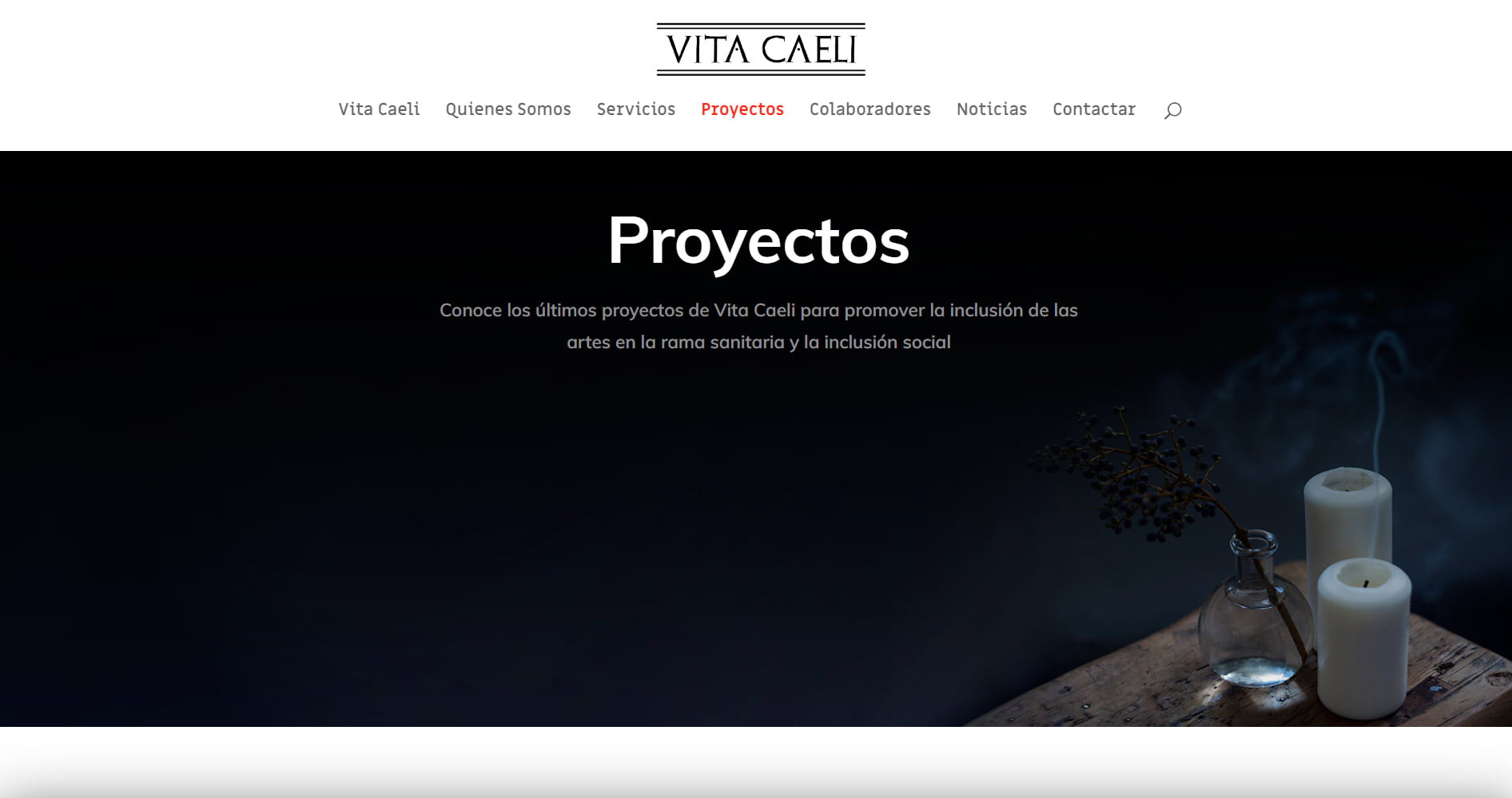 Realización de la página web de la Asociación Vita Caeli, la cual se dedica a la promoción de las Artes en el Entorno Sanitario y la Inclusión Social
